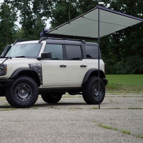 BUNKER INDUST 270 grados de pie libre vehículo toldo cuadrado Oxford SUV Van Truck Camper resistente a la intemperie luz LED incorporada tres