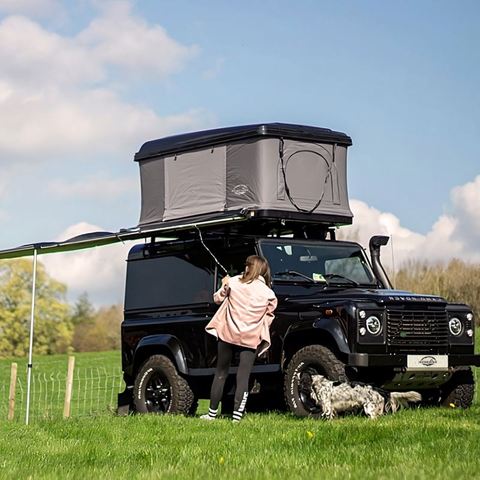 Nueva tienda de campaña original de tres estaciones en stock y lista para el diseño de techo abierto lateral del coche de camping con tela Oxford